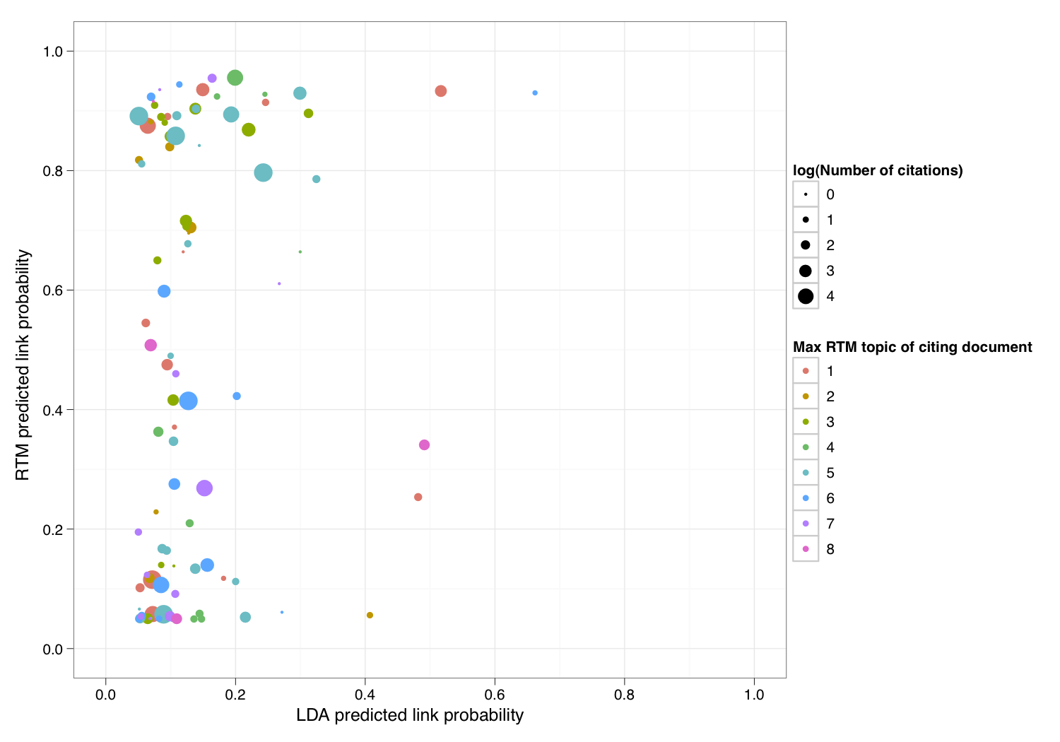 - the Relational Topic Model (RTM) for discovering patterns which account for both document content and connections between documents (run